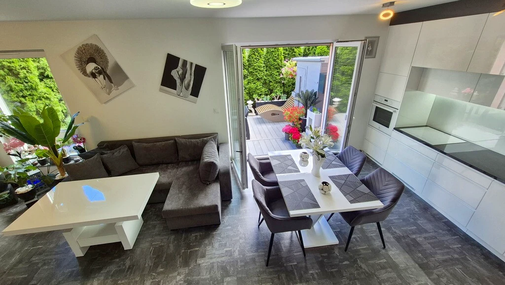 Modernes 2-Etagen-Apartment mit Garten, Terrasse, Sauna und Garage in Szczecin-Gumieńce