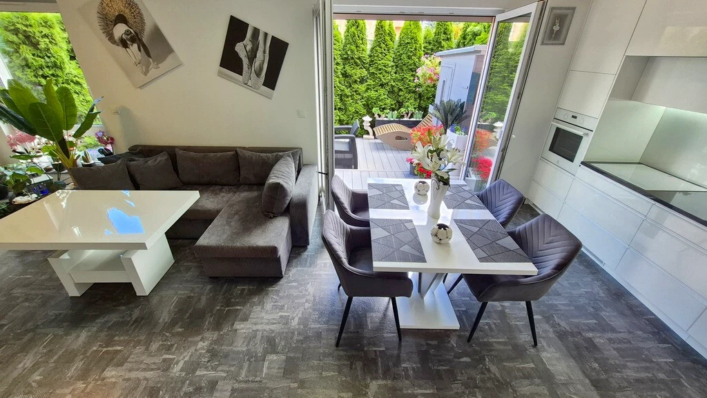 Diese moderne, hochwertig ausgestattete Erdgeschosswohnung mit großzügiger Terrasse bietet höchsten Wohnkomfort. Dank Gasheizung, Klimaanlage und voll ausgestatteter Küche ist sie sofort bezugsbereit. Die Immobilie besticht durch ihre ruhige Lage im gefragten Stadtteil Gumieńce und bietet mit eigener Garage, zusätzlichem Stellplatz, Terrasse und Sauna ein ideales Zuhause zum Wohlfühlen.