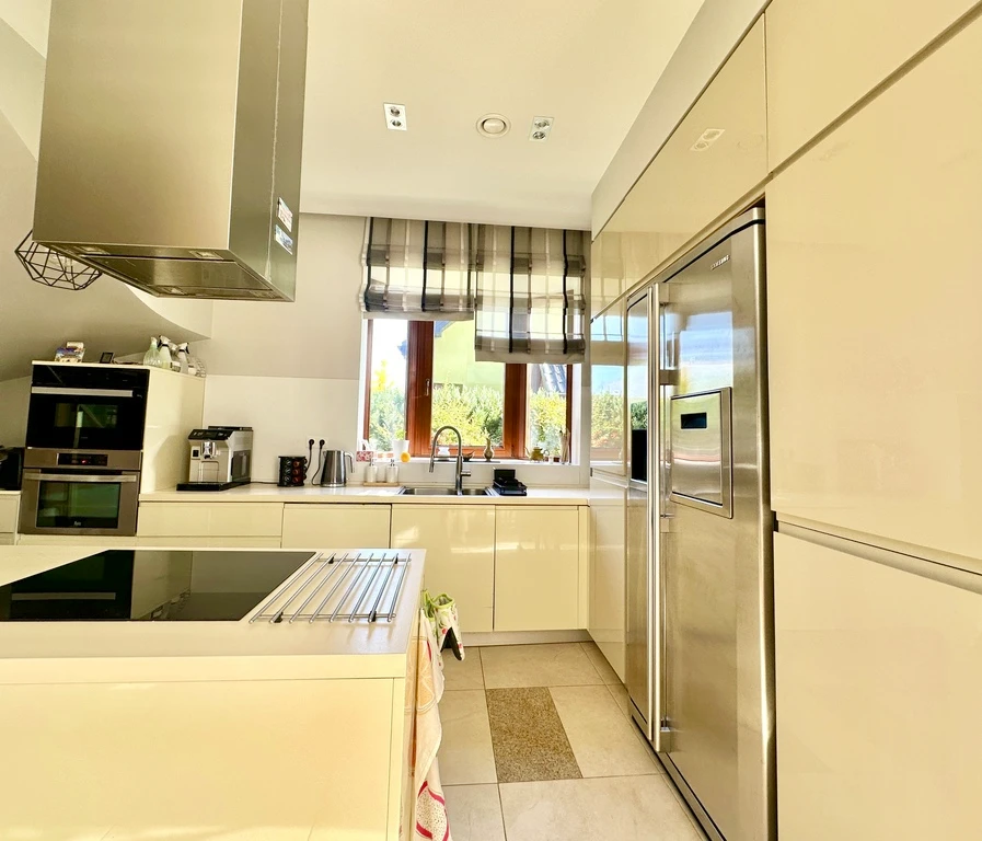 - Offene Küche mit Fenster, voll ausgestattet (Induktionskochfeld, Backofen, Mikrowelle, Side-by-Side-Kühlschrank mit Eiswürfelspender, u.a.)
