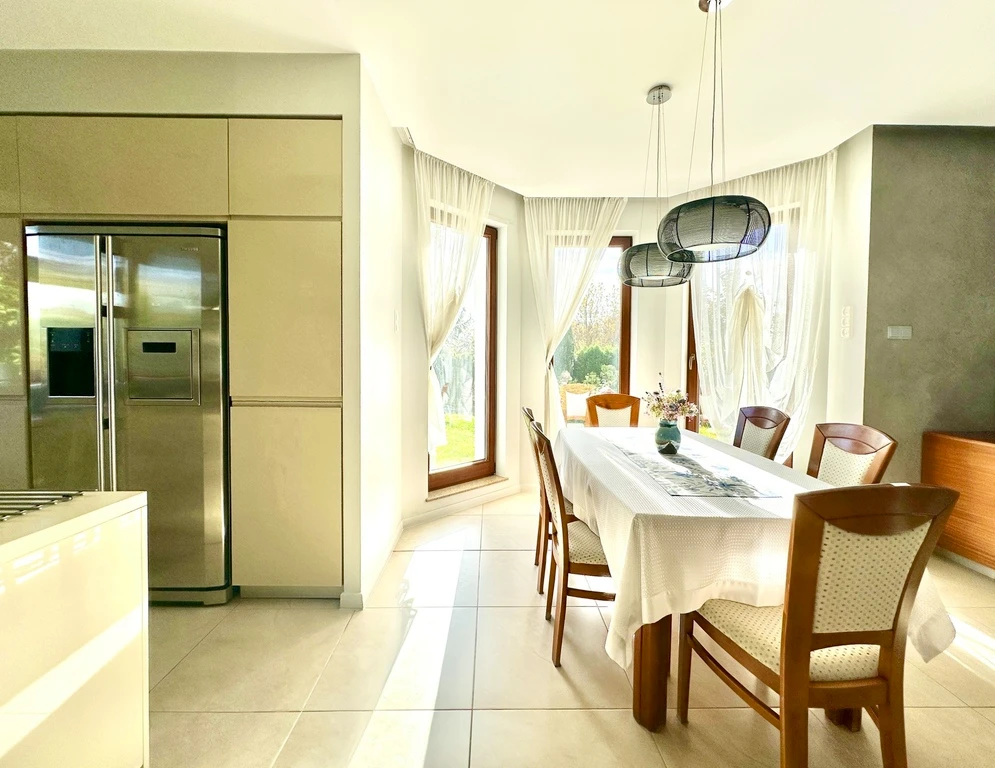 - Esszimmer mit großem Tisch