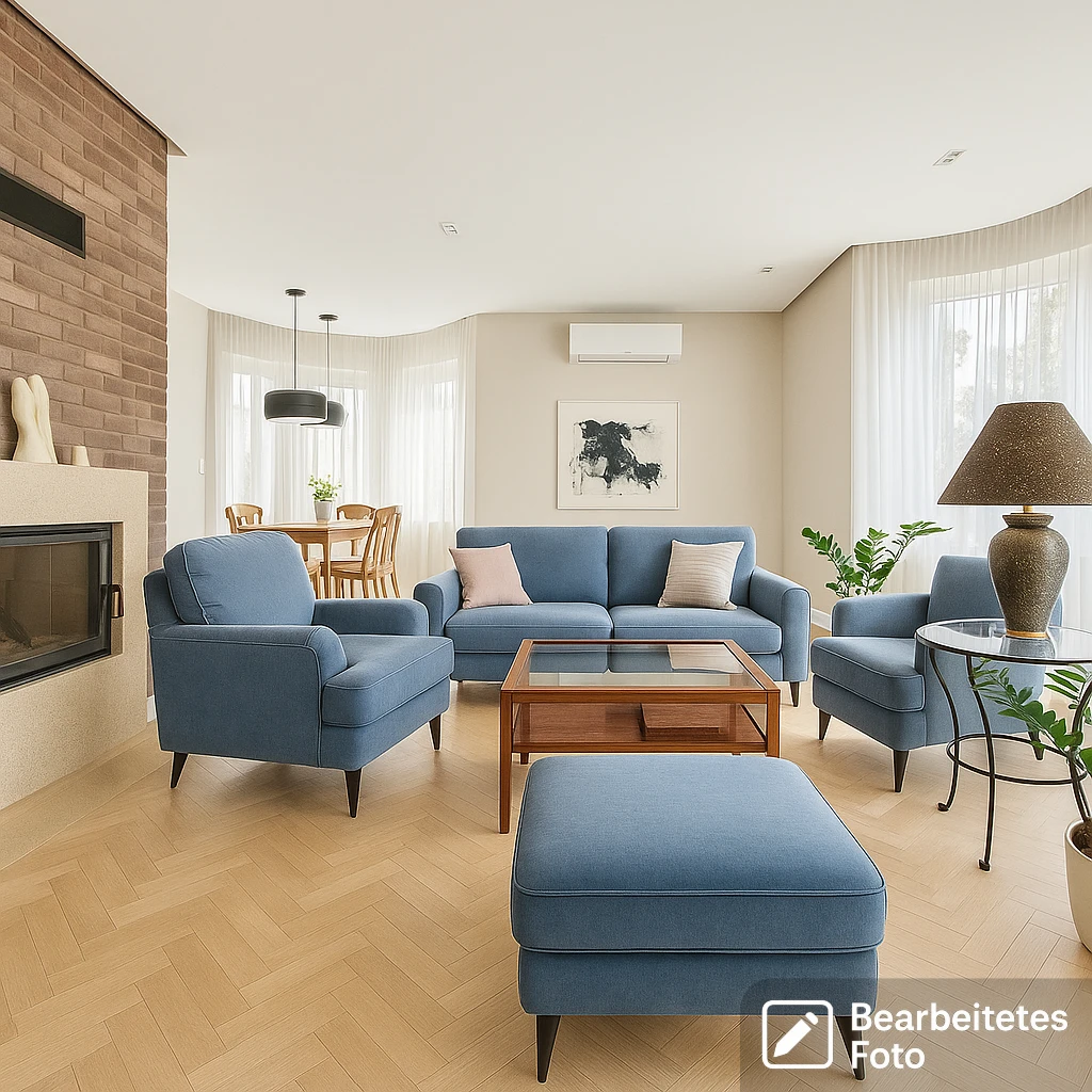 - Heller, offener Wohnbereich mit Kamin (Wasserführung), Zugang zur Terrasse