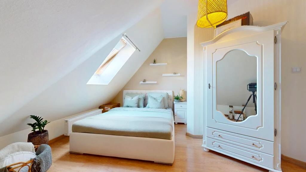 Das Obergeschoss umfasst die privaten Rückzugsräume sowie ein zusätzliches Badezimmer. Eine separate Ankleide sorgt für zusätzliche Ordnung und Komfort.