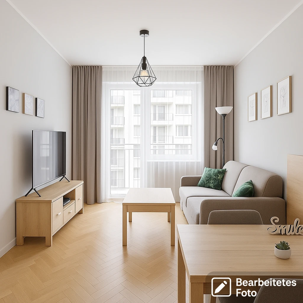 - Ein gemütliches Wohnzimmer mit ausziehbarem Sofa