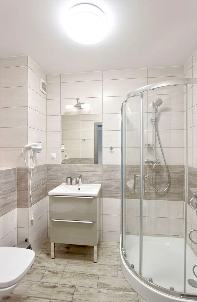 - Ein modernes Badezimmer mit Dusche