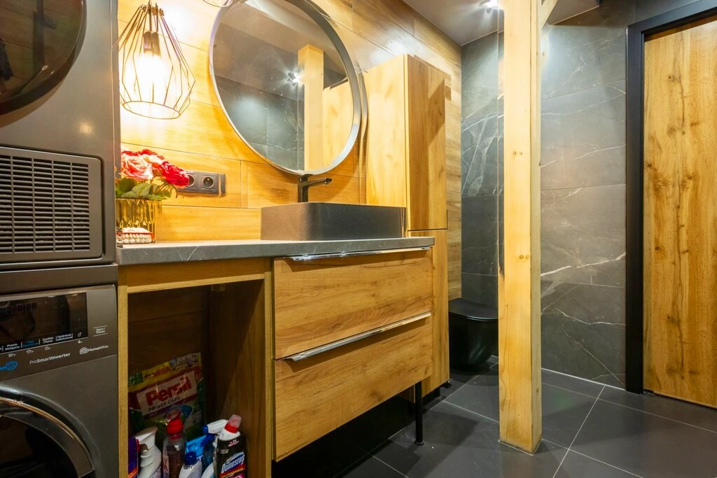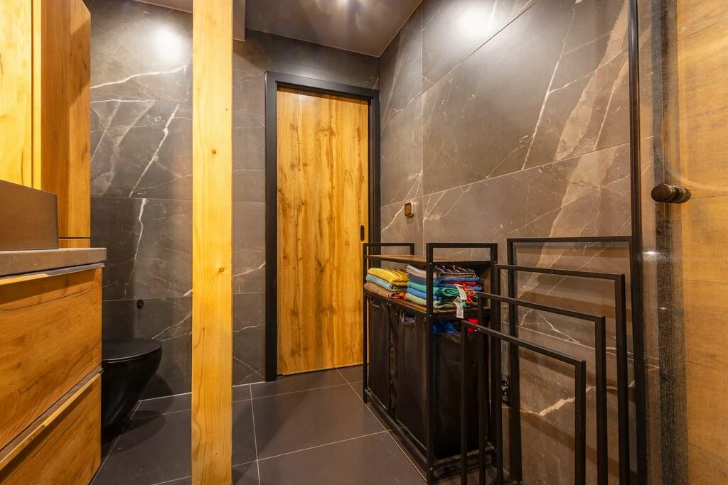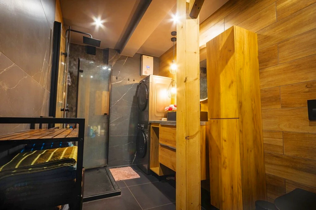 - Elegantes Badezimmer – Mit geschmackvoller Ausstattung und einer hochwertigen Duschkabine.