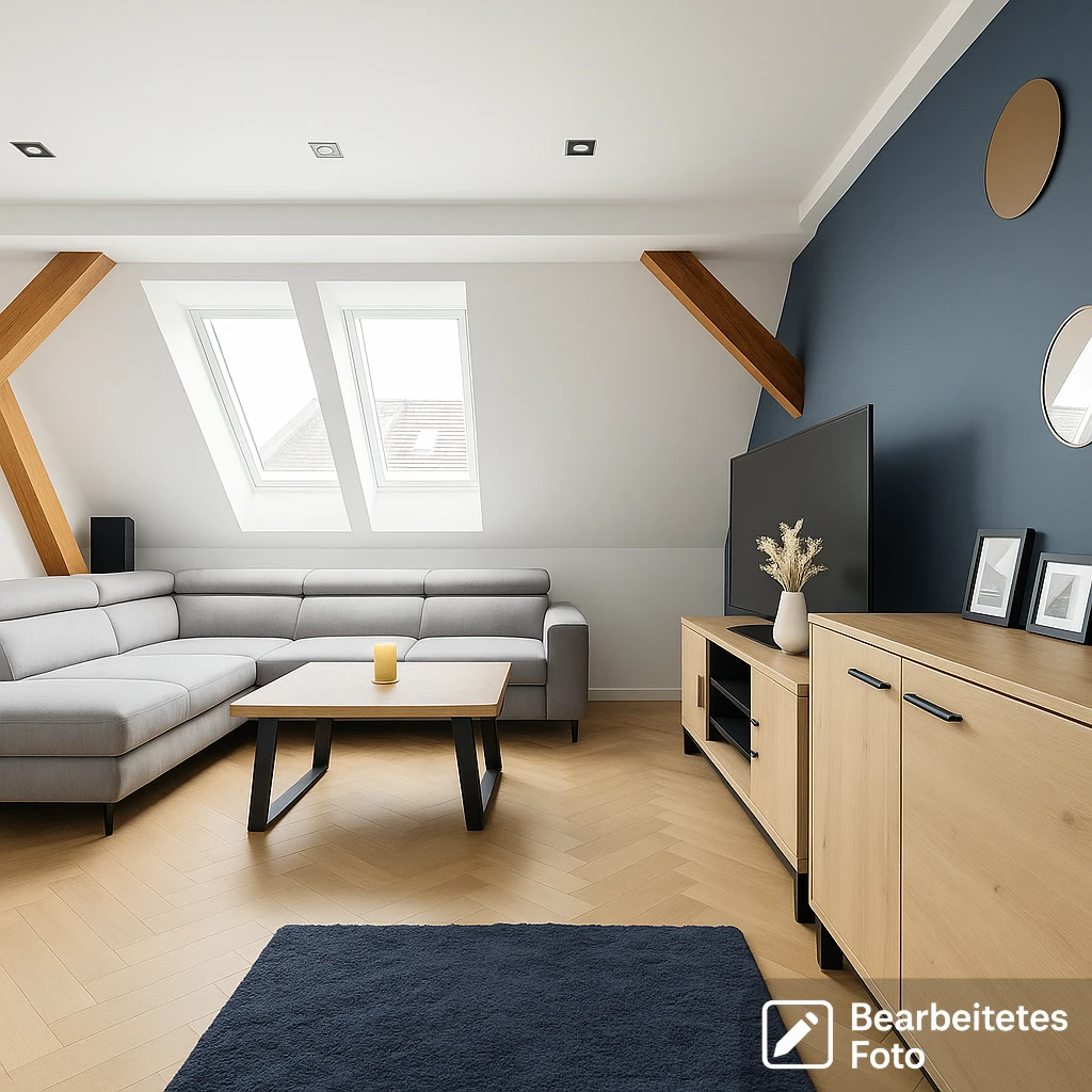 - Großzügiges Wohnzimmer mit offener Küche – Helle Räume mit modernen Fensterlösungen und viel Platz für Geselligkeit.