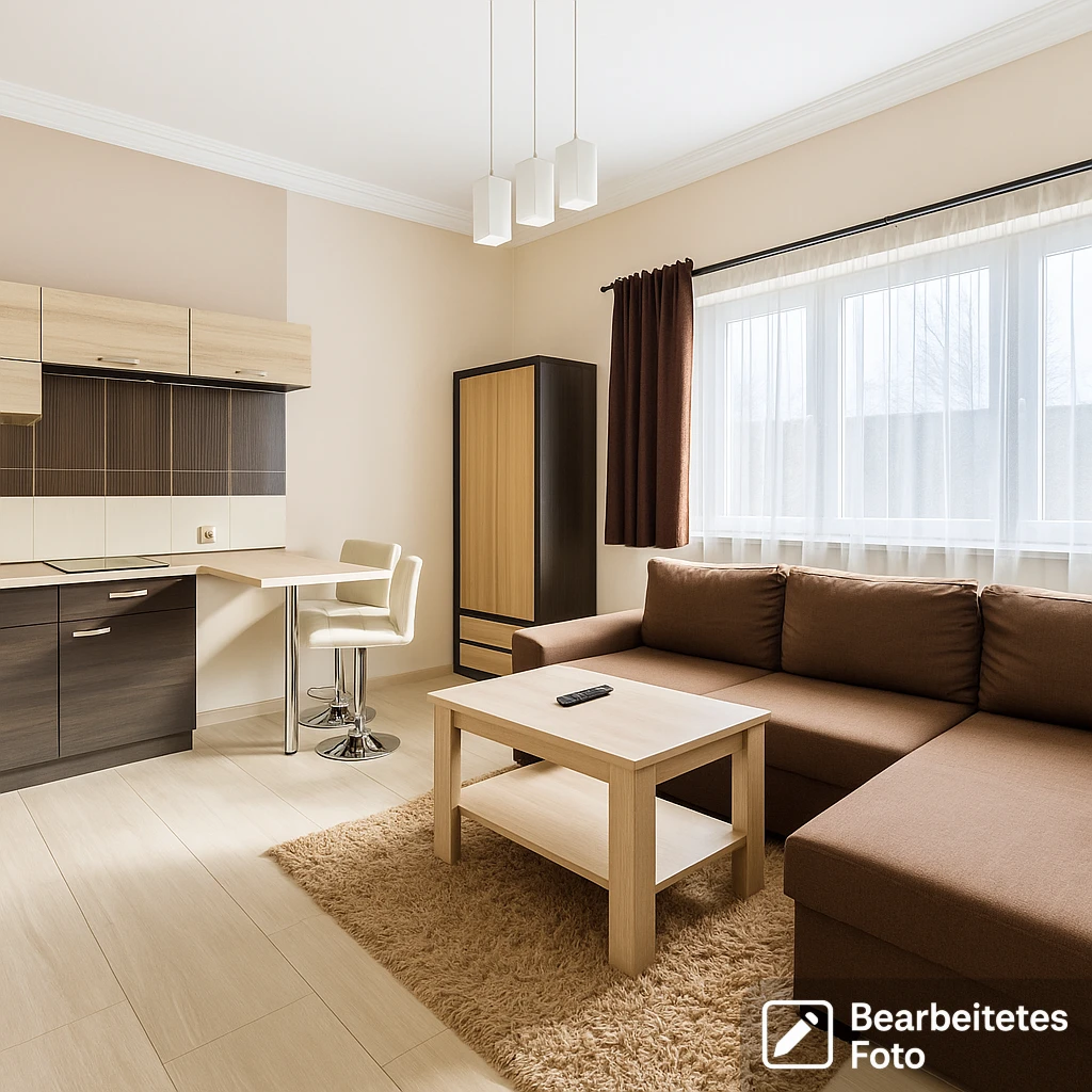 - Wohnzimmer mit offener Küche – hell und großzügig geschnitten, bietet viel Platz für Gestaltungsmöglichkeiten.