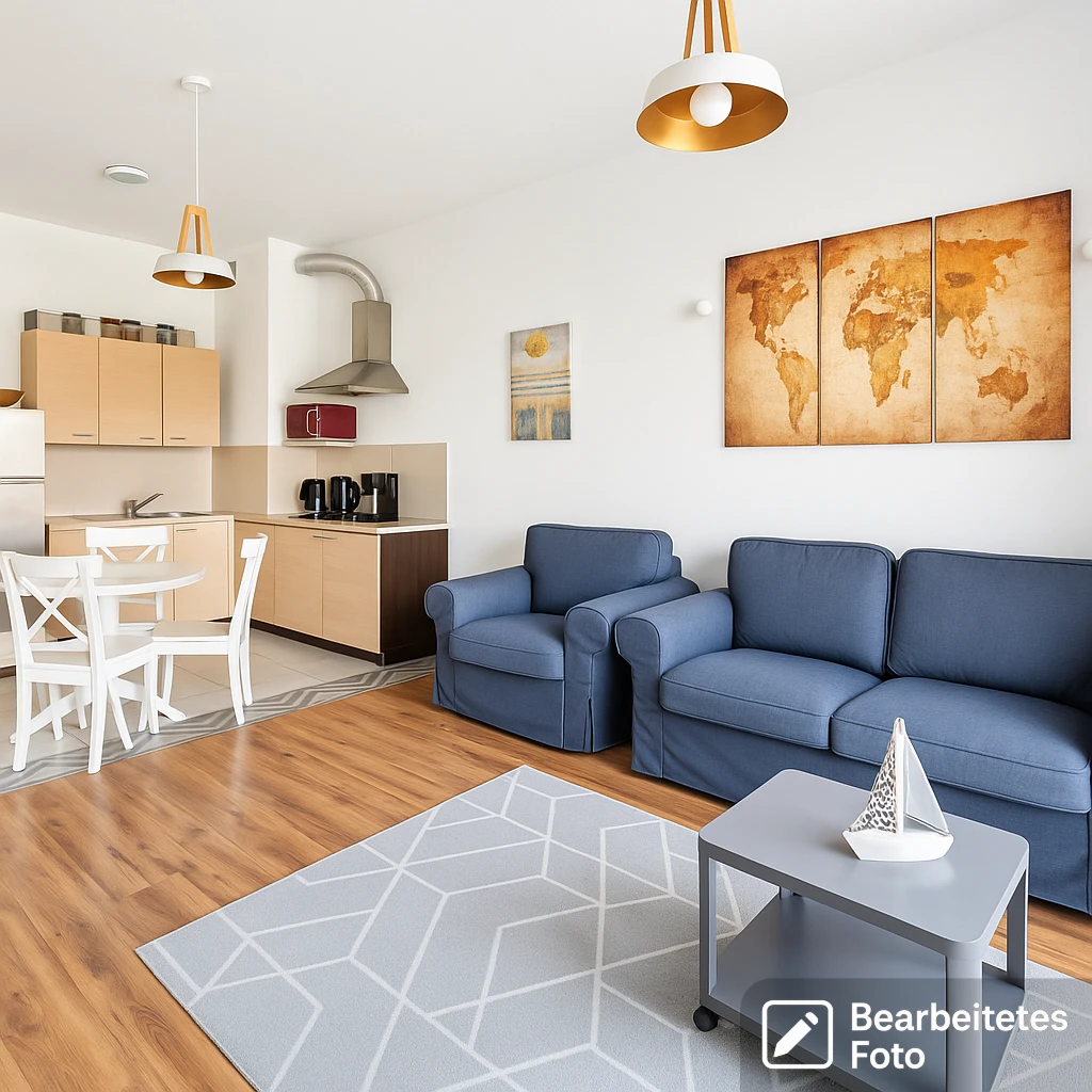 - Heller Wohnbereich mit offenem Küchenbereich – ideal für gemütliche Abende und gesellige Treffen