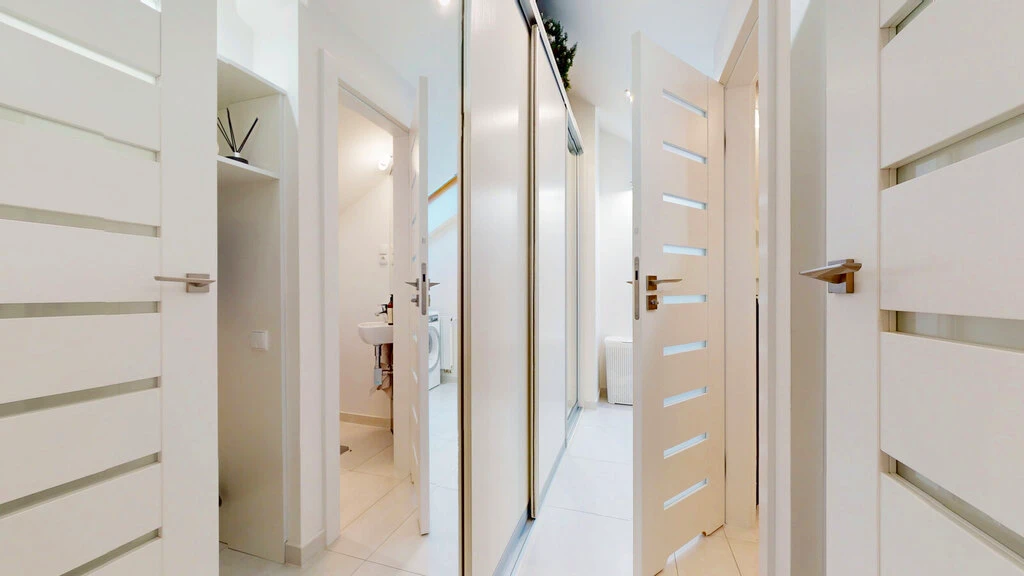 - Pierwsze zdjęcie w naszej galerii zostało lekko zmodyfikowane, aby pokazać, jak nieruchomość mogłaby wyglądać – na przykład po zmianie koloru ścian. Kolejne zdjęcia przedstawiają rzeczywisty stan nieruchomości.