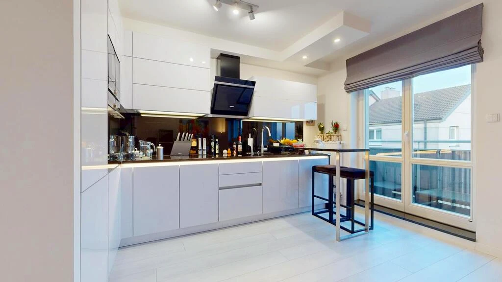 Die Wohnung wurde mit viel Liebe zum Detail gestaltet und hochwertig ausgestattet. Die Küche stammt von einem renommierten deutschen Hersteller und wurde maßgefertigt – allein der Möbelwert beträgt ca. €11.800 (PLN 50.000).