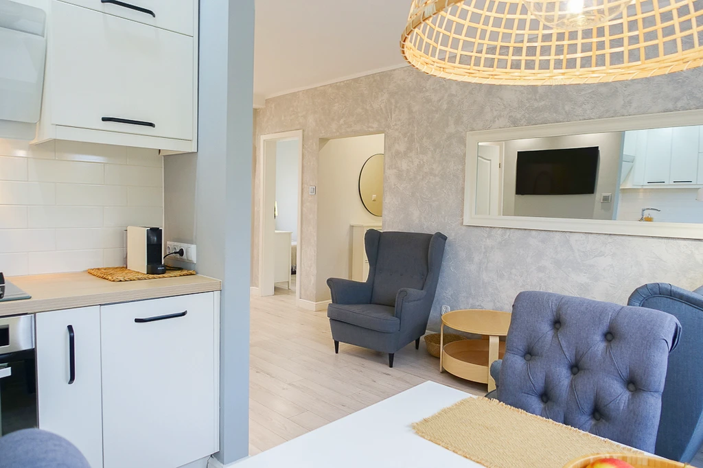 Entdecken Sie dieses stilvoll renovierte und vollmöblierte 4-Zimmer-Wohnung im beliebten Stadtteil Os. Słoneczne – perfekt für alle, die sofort einziehen möchten. Die Wohnung befindet sich im 1. Obergeschoss eines gepflegten vierstöckigen Gebäudes aus den 1980er-Jahren. Mit 63,6 m² Wohnfläche und einem großen Balkon genießen Sie ausreichend Platz und ein angenehmes Wohngefühl.
