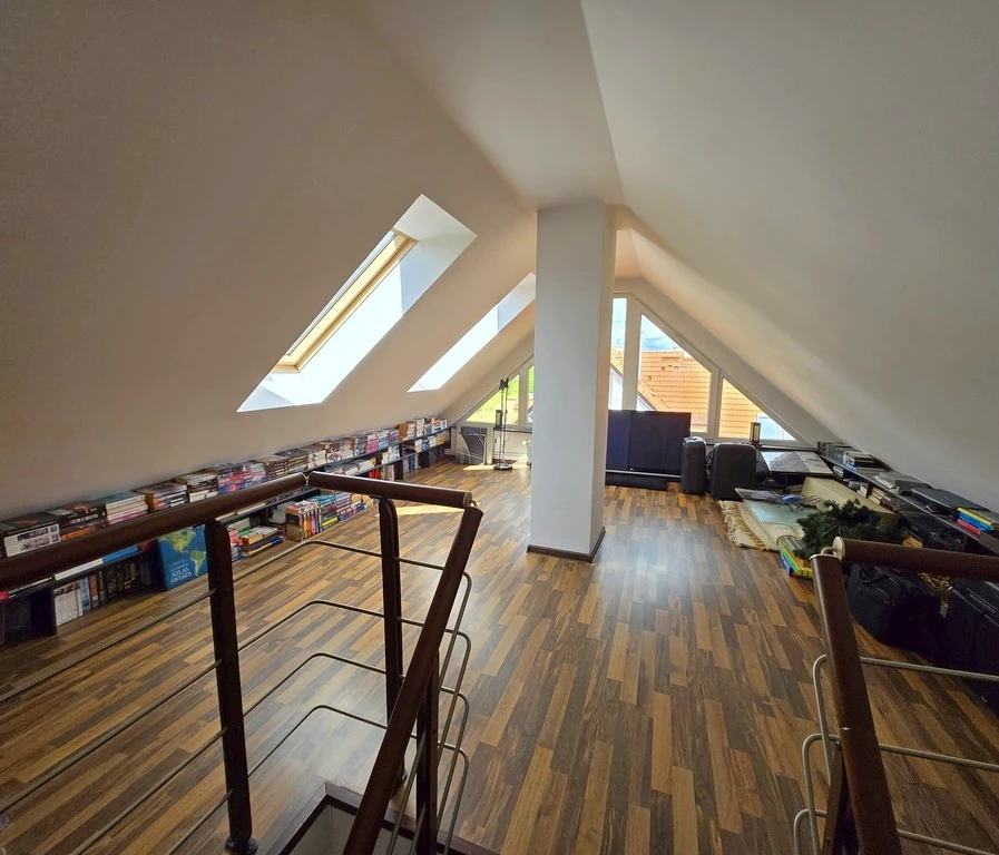 Obergeschoss: - Drei geräumige Zimmer: 31,85 m², 20,86 m² und 17,19 m², zwei davon ausgestattet mit moderner Inverter-Klimaanlage (auch zum Heizen), Zugang zu einem Balkon (1,7 m², Steinbelag) - Kleines Wohnzimmer mit Balkonzugang - Separate Ankleide - Heizraum mit moderner Vaillant ecoTEC24 Gastherme und zentraler Steuerung für Solaranlage - Boden aus Laminat und Keramikfliesen, ebenfalls mit Fußbodenheizung