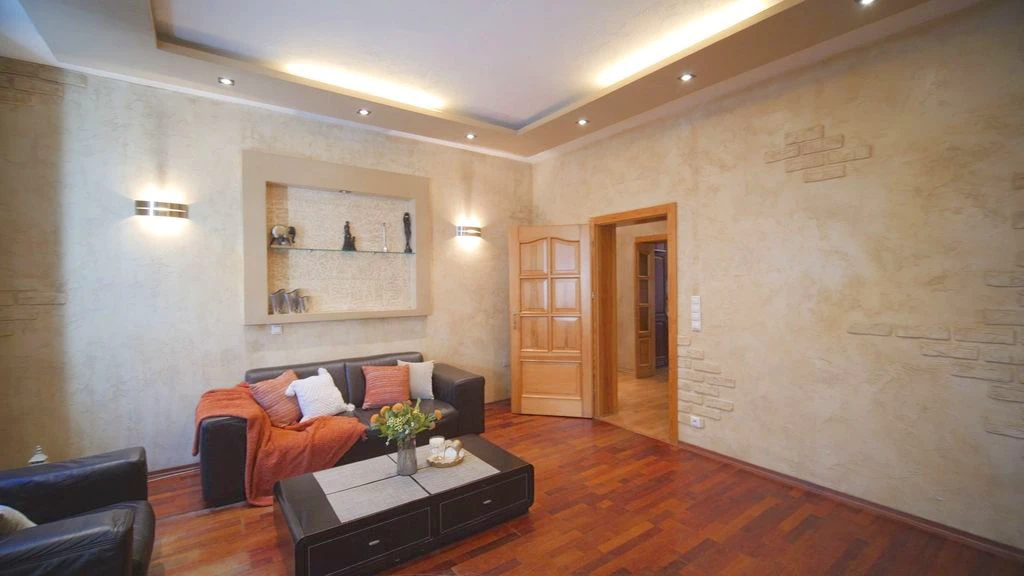 Die Wohnung wurde umfassend modernisiert: Die Wasser-, Elektro- und Gasinstallationen sind erneuert, die Fenster bestehen aus hochwertigem Kunststoff. Die Böden sind mit pflegeleichten Fliesen und modernen Paneelen ausgestattet. Die Wohnung ist durchdacht ausgestattet mit Gegensprechanlage mit Videofunktion, Internetanschluss, Kabelfernsehen sowie Haushaltsgeräten wie Kühlschrank, Backofen, Geschirrspüler und Waschmaschine.