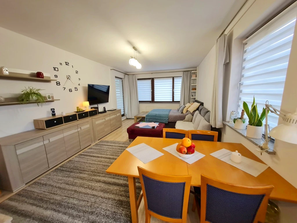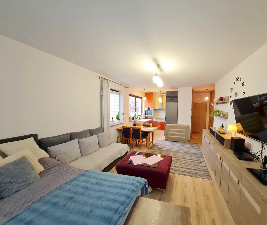 Wir freuen uns, Ihnen eine helle und gepflegte Wohnung im begehrten Stadtteil Warszewo in Szczecin präsentieren zu dürfen. Das Apartment befindet sich im ersten Obergeschoss eines modernen Mehrfamilienhauses aus dem Jahr 2012 – Teil der ersten Bauetappe der geschätzten Wohnanlage "Panoramika". Der Zugang ist bequem über einen Aufzug möglich.