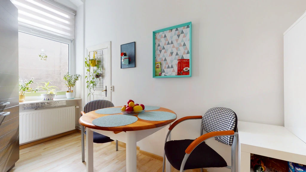 Entdecken Sie diese außergewöhnlich atmosphärische und funktional geschnittene Wohnung mit einer großzügigen Fläche von 99,24 m². Die Immobilie befindet sich im ersten Obergeschoss eines gepflegten Altbaus aus dem Jahr 1900 in zentraler Lage von Stettin.