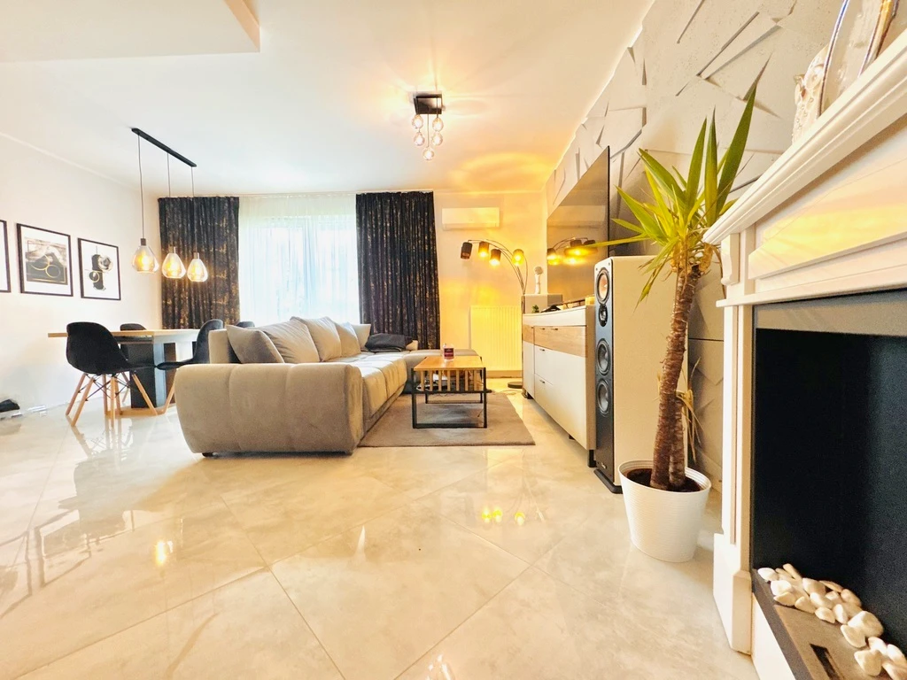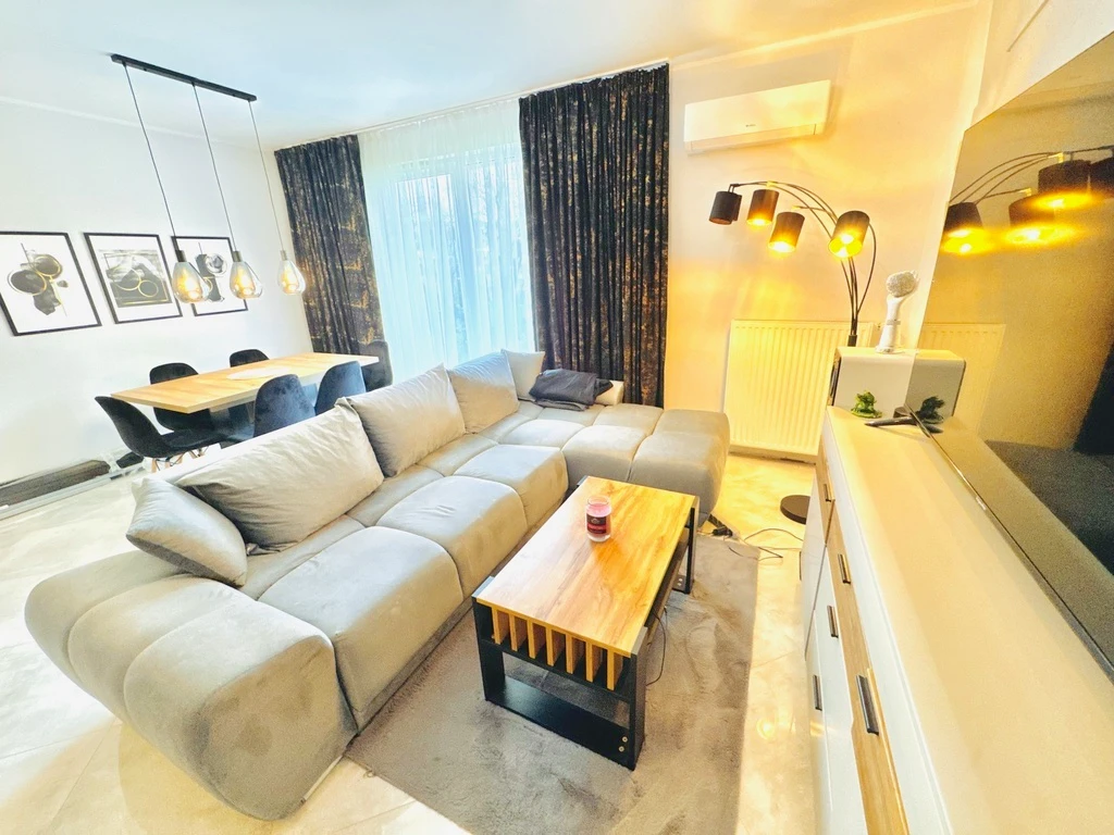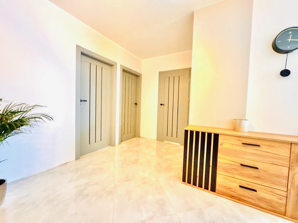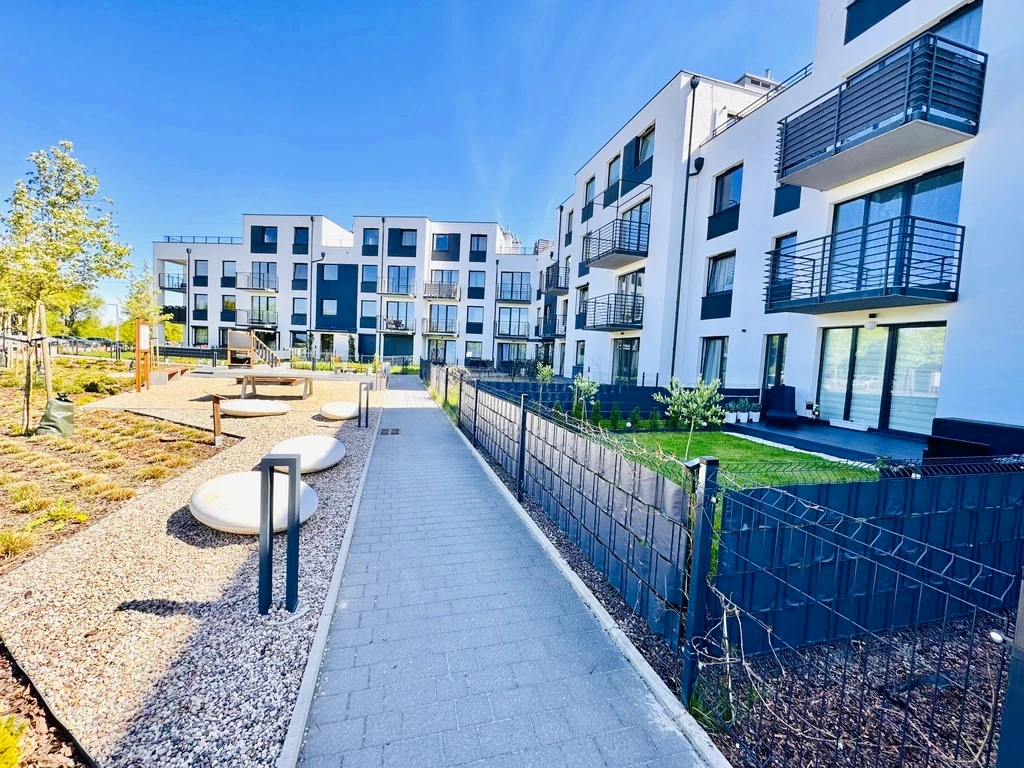 Willkommen in Ihrem neuen Zuhause! Diese charmante 3-Zimmer-Wohnung befindet sich im Erdgeschoss eines modernen, dreistöckigen Apartmenthauses, das im Jahr 2023 erbaut wurde. Die Immobilie beeindruckt durch ihre durchdachte Raumaufteilung, zwei private Gärten und eine ideale Lage in einem familienfreundlichen Neubauviertel in Rajkowo (Bezirk Gumieńce).