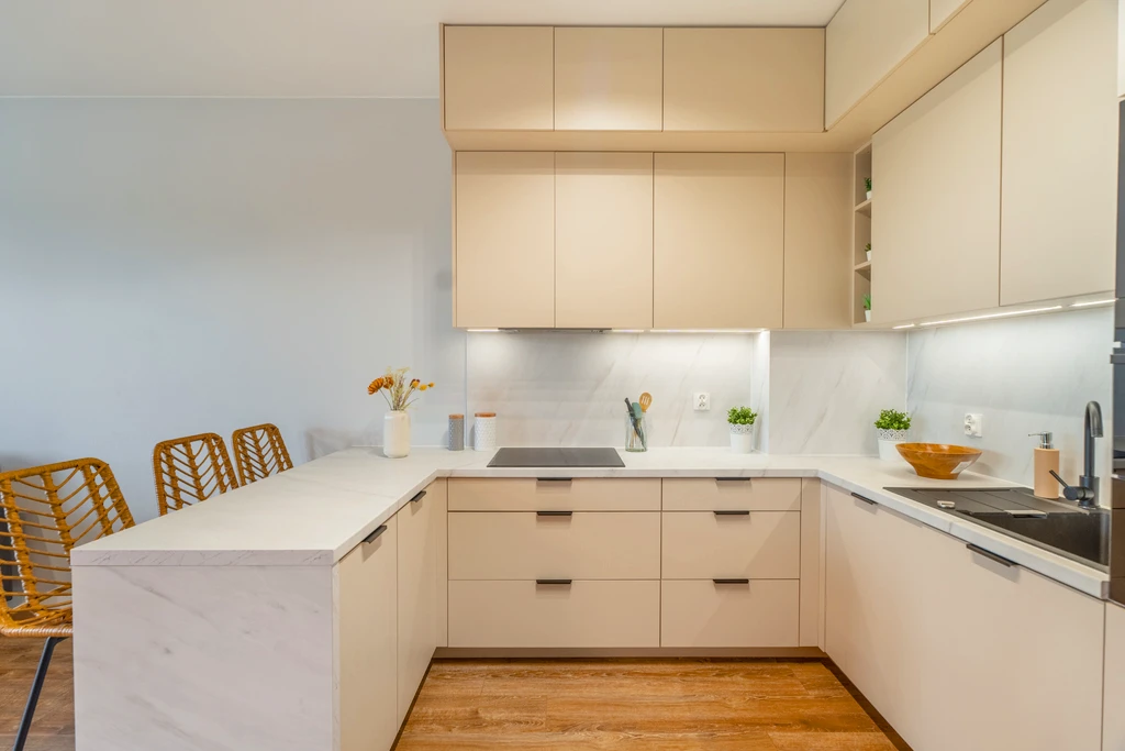 - Küche: Voll ausgestattet mit Kühlschrank, Backofen, Induktionsherd, Geschirrspüler sowie Mikrowelle.