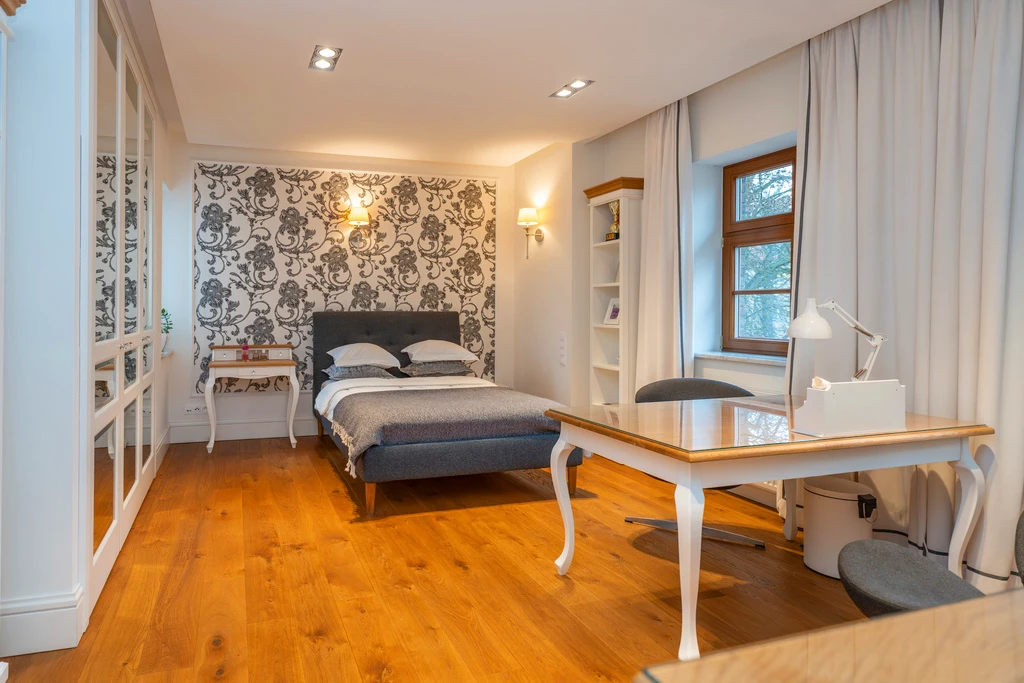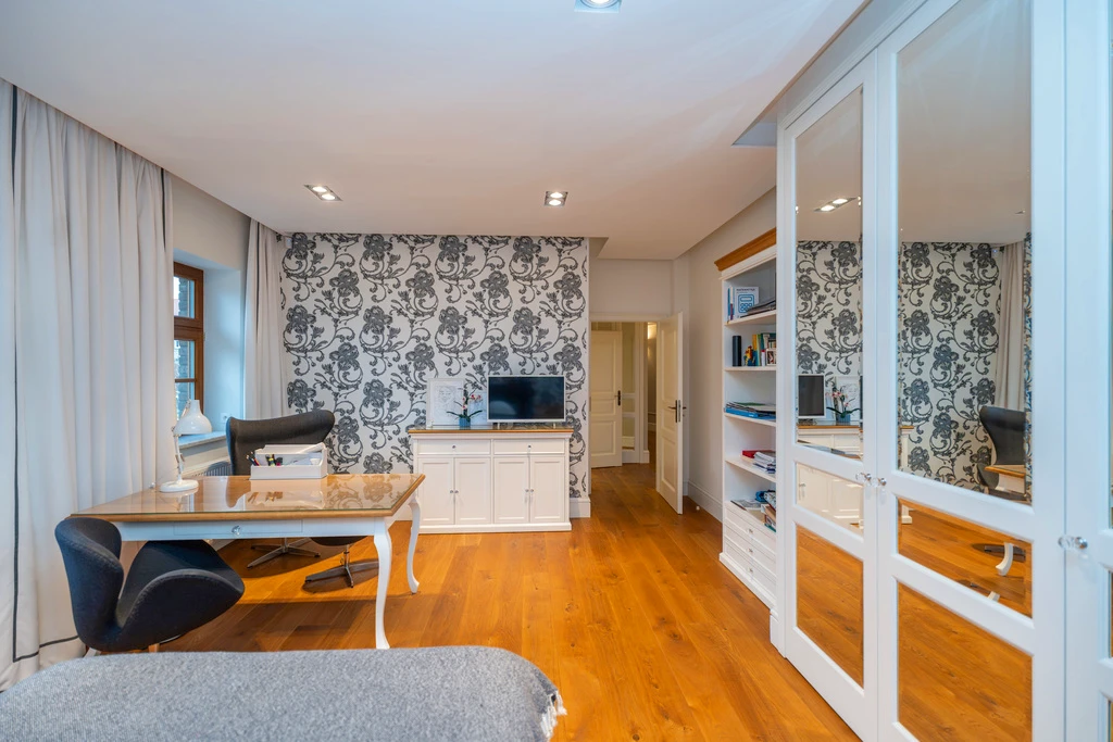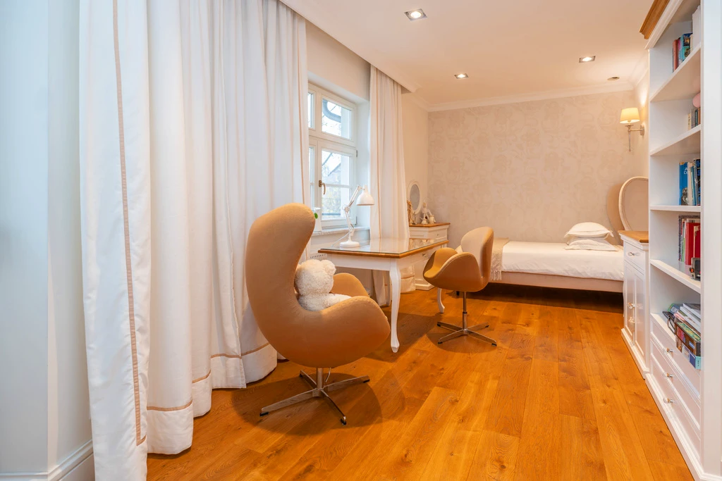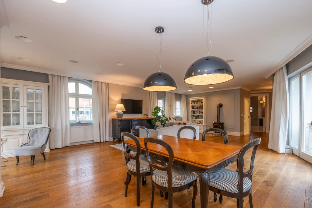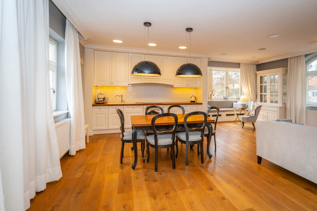 Die Villa befindet sich in Pogodno – einem der begehrtesten Stadtteile Szczecins. Hier treffen historische Villen, ruhige Seitenstraßen und viel Grün auf urbane Infrastruktur. Schulen, Parks, Cafés und Geschäfte sind fußläufig erreichbar.