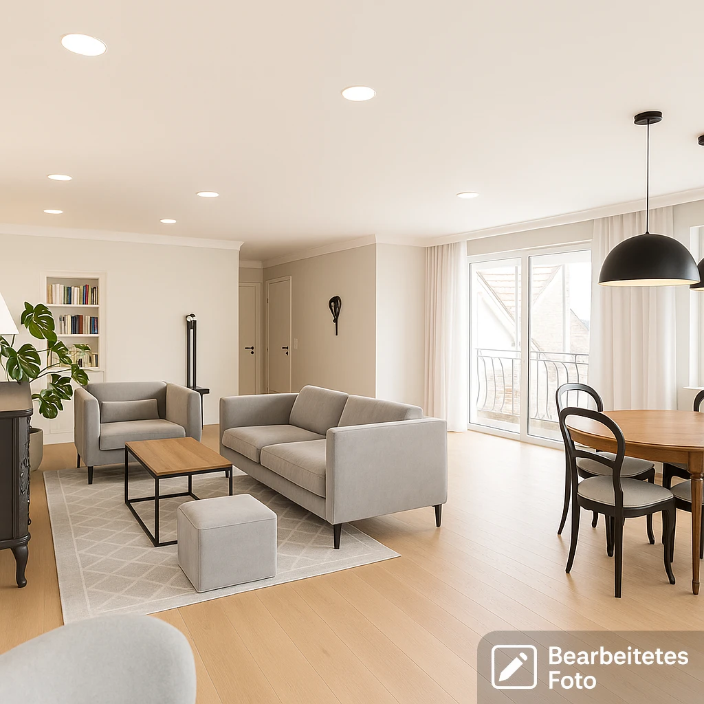 - Bodenbeläge: Hochwertige, geölte Eichenholzdielen