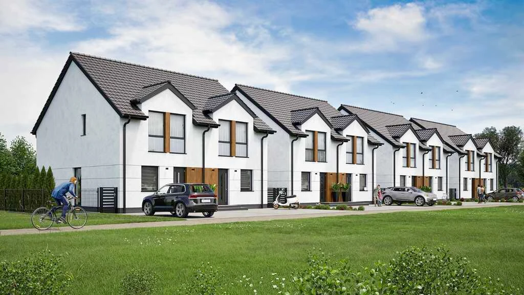 Willkommen in Ihrem neuen Zuhause! Dieses moderne Doppelhaus entsteht auf einem großzügigen, rechteckigen Grundstück mit einer Fläche von 329 m² – perfekt für Familien oder alle, die Wert auf Komfort, Energieeffizienz und modernes Design legen. Die ruhige, flache Lage bietet ideale Bedingungen für entspanntes Wohnen in naturnaher Umgebung.
