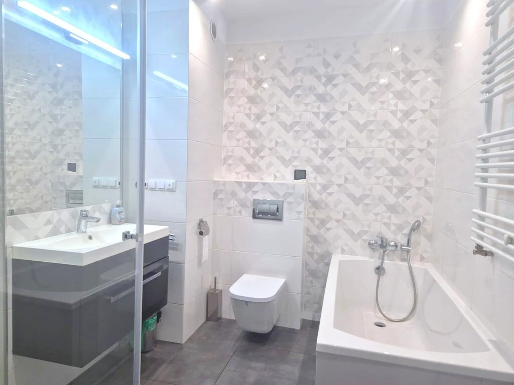Willkommen in Ihrem neuen Zuhause! Dieses moderne 2-Zimmer-Apartment mit eigenem Garten (ca. 60 m²) befindet sich im beliebten Stadtteil Gumieńce in Szczecin, im Erdgeschoss eines gepflegten, vierstöckigen Wohngebäudes aus dem Jahr 2016. Es ist ideal für alle, die modernes Wohnen in ruhiger Lage mit guter Anbindung an das Stadtzentrum verbinden möchten.