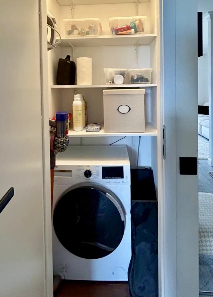 Ein separates Hauswirtschaftszimmer ergänzt die Wohnung auf praktische Weise mit Platz für Waschmaschine und Haushaltsgeräte – diskret, aber äußerst funktional.